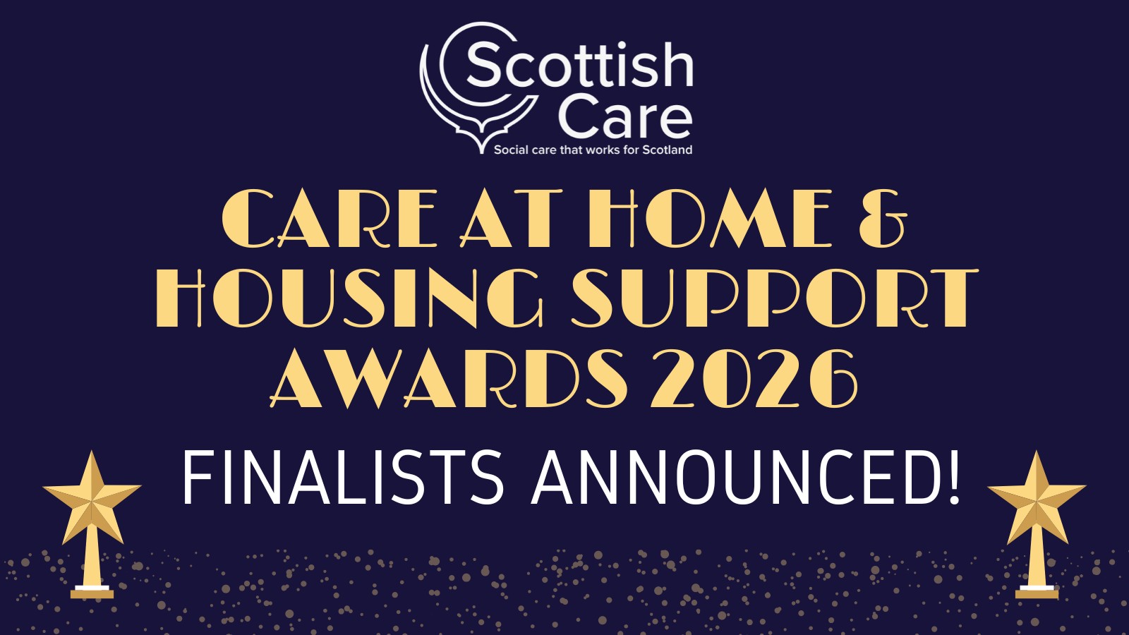 We’re thrilled to announce the finalists for this year’s Care at Home and Housing Support Awards! A big thank you to everyone who submitted nominations, and congratulations to all those who made the shortlist!